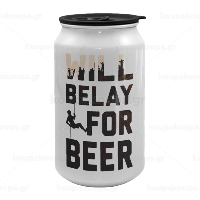 Will Belay For Beer, Κούπα ταξιδιού μεταλλική με καπάκι (tin-can) 500ml
