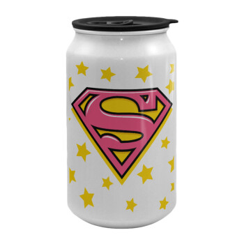 Superman Pink, Κούπα ταξιδιού μεταλλική με καπάκι (tin-can) 500ml