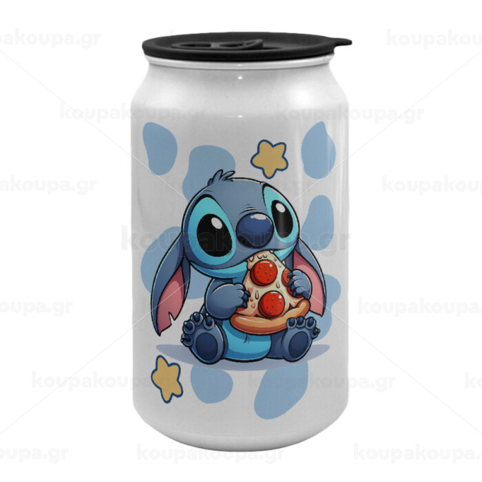 Stitch Pizza, Κούπα ταξιδιού μεταλλική με καπάκι (tin-can) 500ml