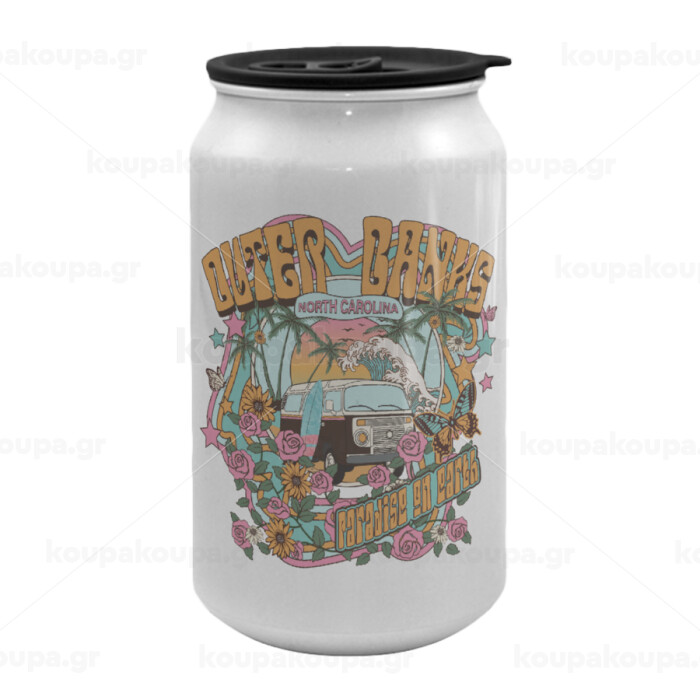 Outerbanks paradise on earth, Κούπα ταξιδιού μεταλλική με καπάκι (tin-can) 500ml