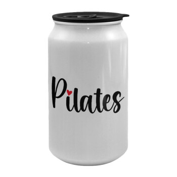 Pilates love, Κούπα ταξιδιού μεταλλική με καπάκι (tin-can) 500ml