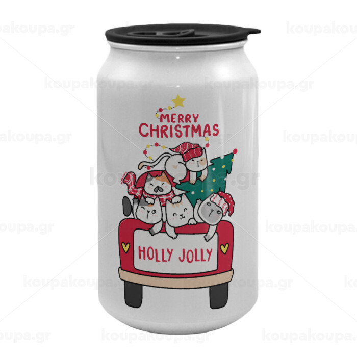 Merry Christmas cats in car, Κούπα ταξιδιού μεταλλική με καπάκι (tin-can) 500ml