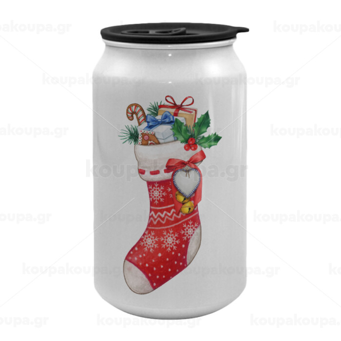 Xmas boot, Κούπα ταξιδιού μεταλλική με καπάκι (tin-can) 500ml
