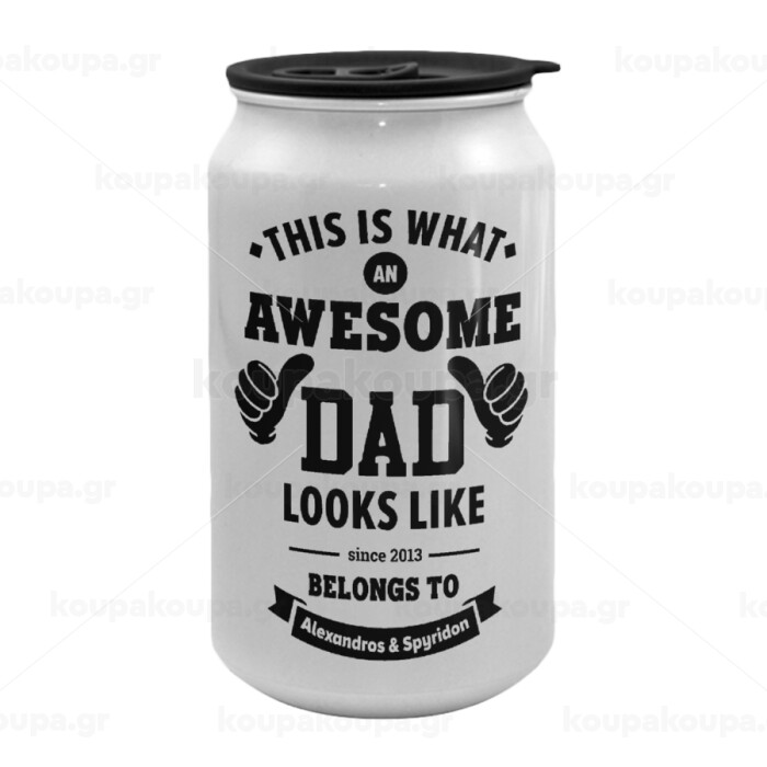 This is what an Awesome DAD looks like, Κούπα ταξιδιού μεταλλική με καπάκι (tin-can) 500ml