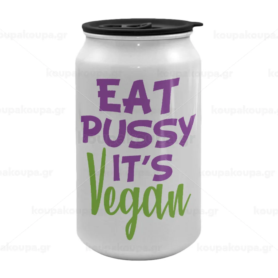 EAT pussy it's vegan, Κούπα ταξιδιού μεταλλική με καπάκι (tin-can) 500ml