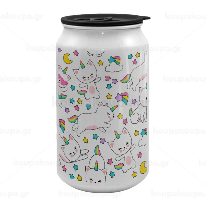 Cats unicorns, Κούπα ταξιδιού μεταλλική με καπάκι (tin-can) 500ml