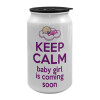 KEEP CALM baby girl is coming soon!!!, Κούπα ταξιδιού μεταλλική με καπάκι (tin-can) 500ml