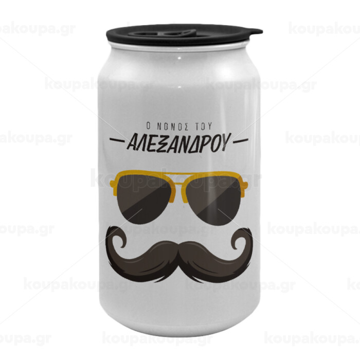Ο νονός μου, μουστάκι με γυαλιά, Κούπα ταξιδιού μεταλλική με καπάκι (tin-can) 500ml