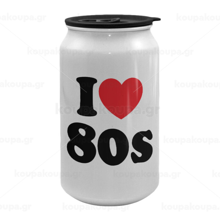 I Love 80s, Κούπα ταξιδιού μεταλλική με καπάκι (tin-can) 500ml