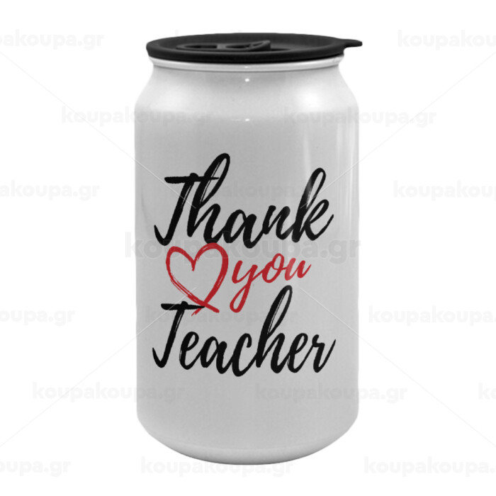 Thank you teacher, Κούπα ταξιδιού μεταλλική με καπάκι (tin-can) 500ml