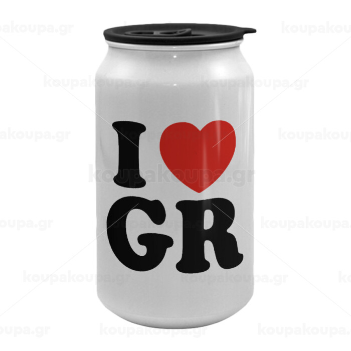 I Love GR, Κούπα ταξιδιού μεταλλική με καπάκι (tin-can) 500ml