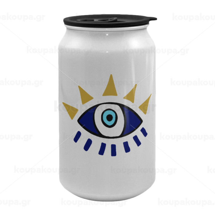 blue evil eye, Κούπα ταξιδιού μεταλλική με καπάκι (tin-can) 500ml
