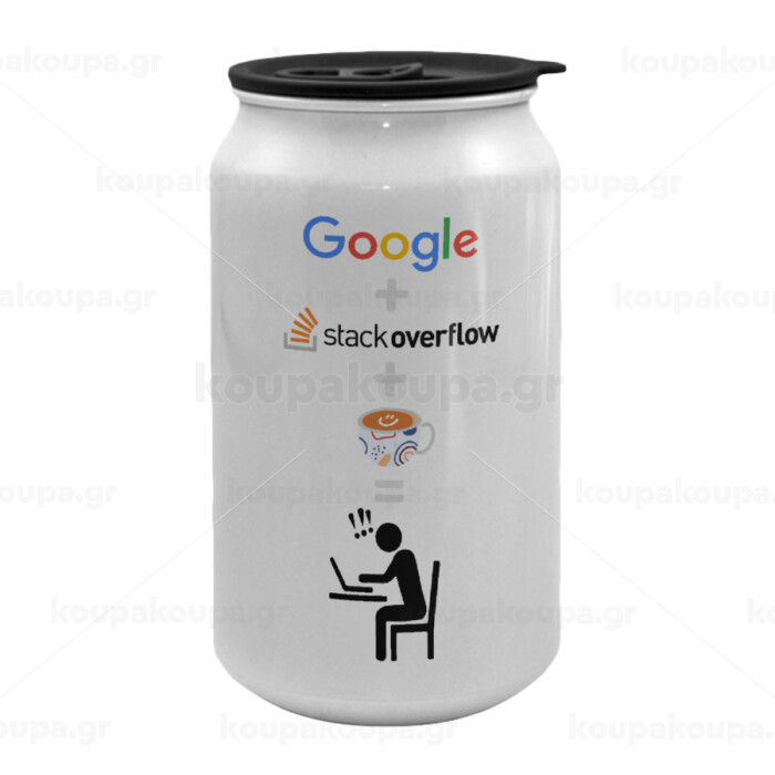 Google + Stack overflow + Coffee, Κούπα ταξιδιού μεταλλική με καπάκι (tin-can) 500ml