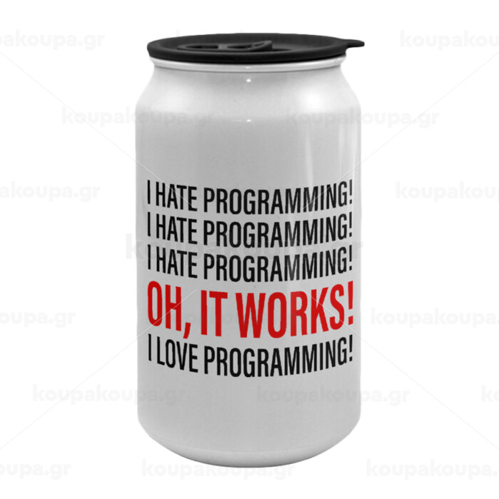 I hate programming!!!, Κούπα ταξιδιού μεταλλική με καπάκι (tin-can) 500ml