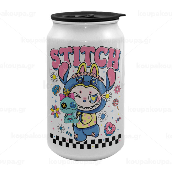 Labubu Stitch, Κούπα ταξιδιού μεταλλική με καπάκι (tin-can) 500ml