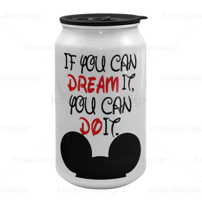 If you can dream it, you can do it, Κούπα ταξιδιού μεταλλική με καπάκι (tin-can) 500ml