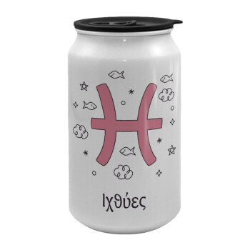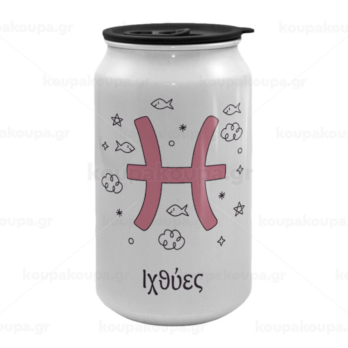 Ζώδια Ιχθύες, Κούπα ταξιδιού μεταλλική με καπάκι (tin-can) 500ml