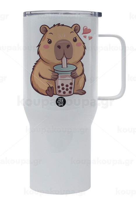 Capybara Bubble Tea, Mega Stainless steel Tumbler with lid, double wall 750L