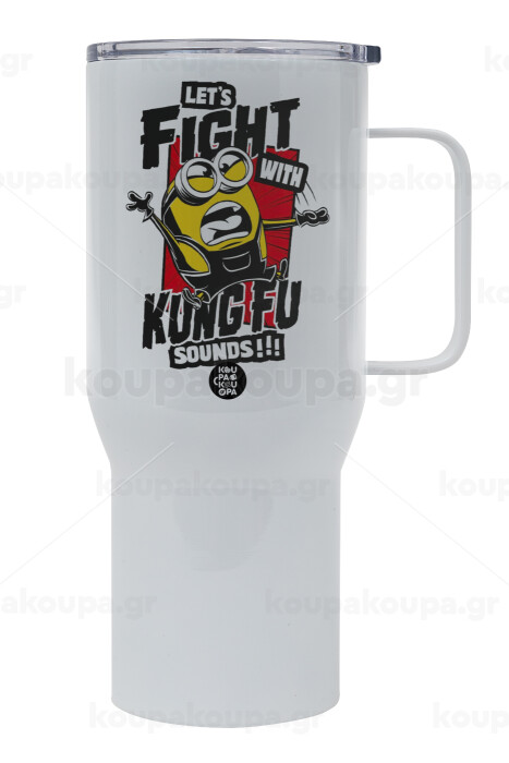 Minions Let's fight with kung fu sounds, Mega Stainless steel Tumbler with lid, double wall 750L