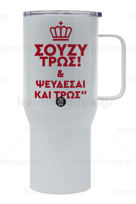 Σούζυ και ψεύδεσαι και τρως, Mega Stainless steel Tumbler with lid, double wall 750L