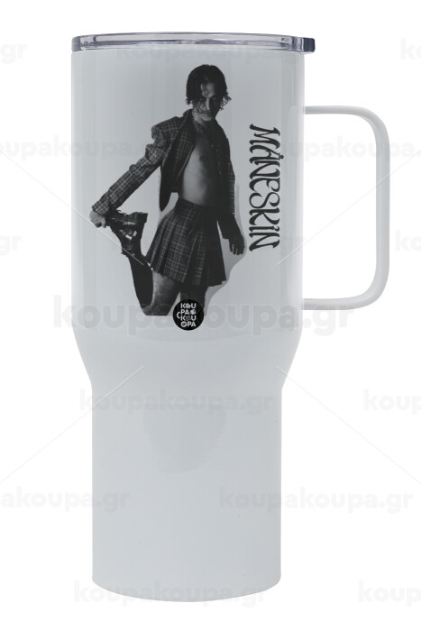 Maneskin Damiano David, Mega Stainless steel Tumbler with lid, double wall 750L