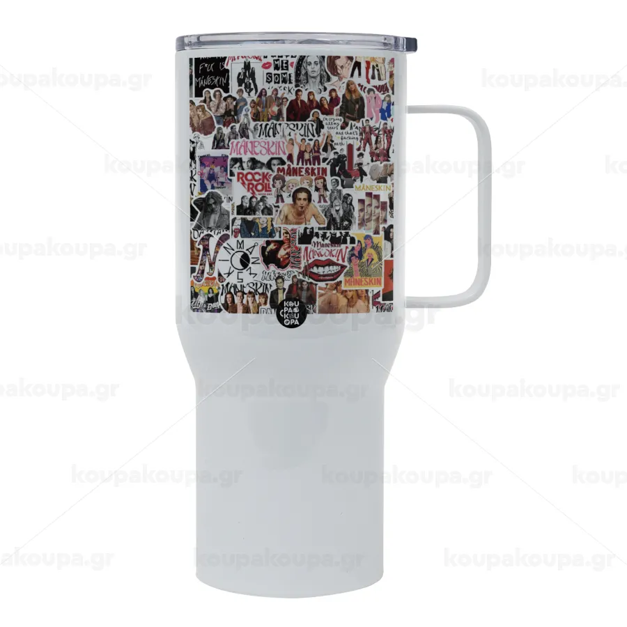 Maneskin stickers, Mega Stainless steel Tumbler with lid, double wall 750L