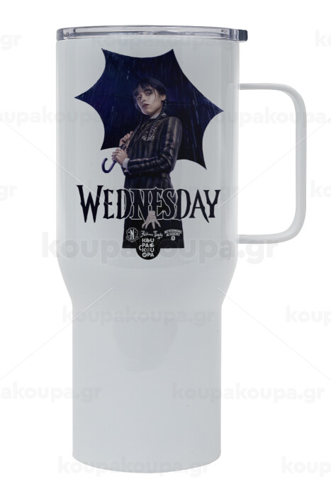Wednesday rain, Mega Stainless steel Tumbler with lid, double wall 750L