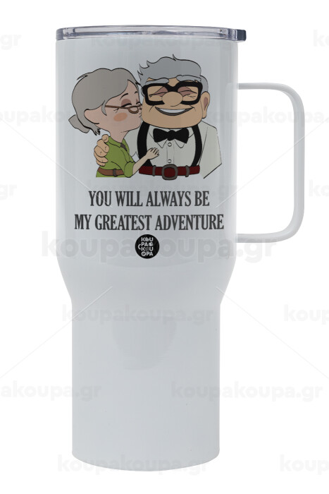 UP, YOU WILL ALWAYS BE MY GREATEST ADVENTURE, Mega Stainless steel Tumbler with lid, double wall 750L