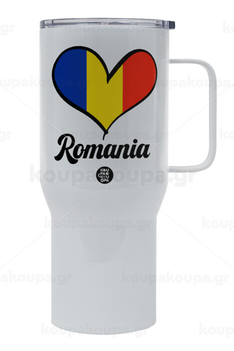 Romania flag, Mega Stainless steel Tumbler with lid, double wall 750L
