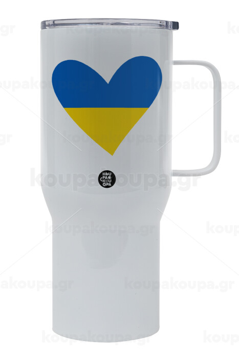 UKRAINE heart, Mega Stainless steel Tumbler with lid, double wall 750L