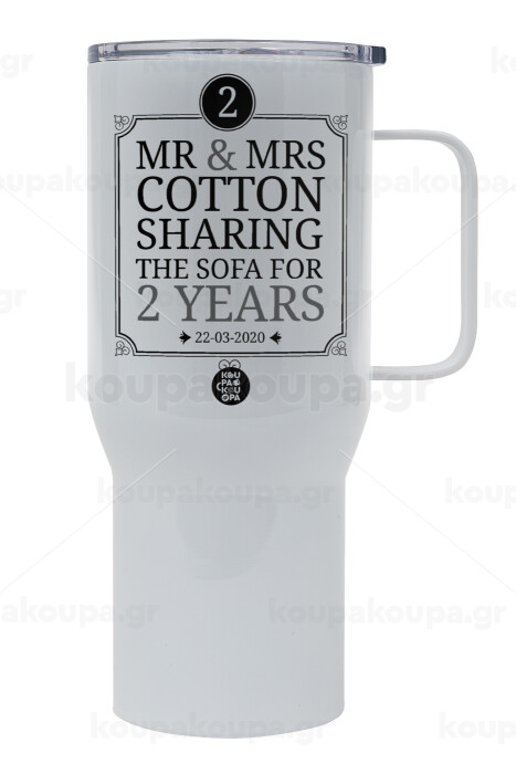 Mr & Mrs Sharing the sofa, Mega Stainless steel Tumbler with lid, double wall 750L