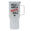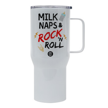 milk naps and Rock n' Roll, Mega Stainless steel Tumbler with lid, double wall 750L
