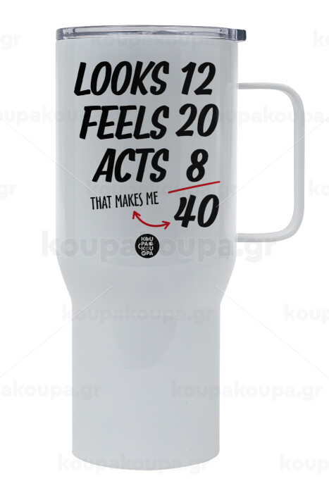 Looks, feels, acts LIKE your AGE, Mega Stainless steel Tumbler with lid, double wall 750L