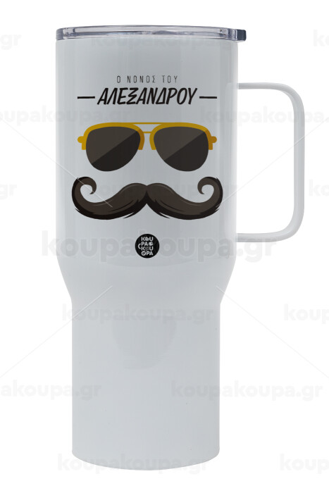 Ο νονός μου, μουστάκι με γυαλιά, Mega Stainless steel Tumbler with lid, double wall 750L