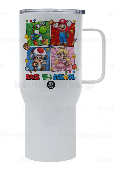 Back to the School Mario & Friends, Mega Stainless steel Tumbler with lid, double wall 750L