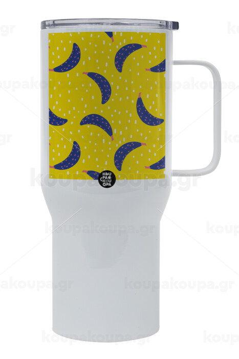 Yellow seamless with blue bananas, Mega Stainless steel Tumbler with lid, double wall 750L