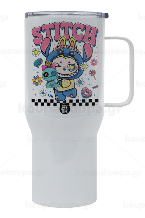 Labubu Stitch, Mega Stainless steel Tumbler with lid, double wall 750L