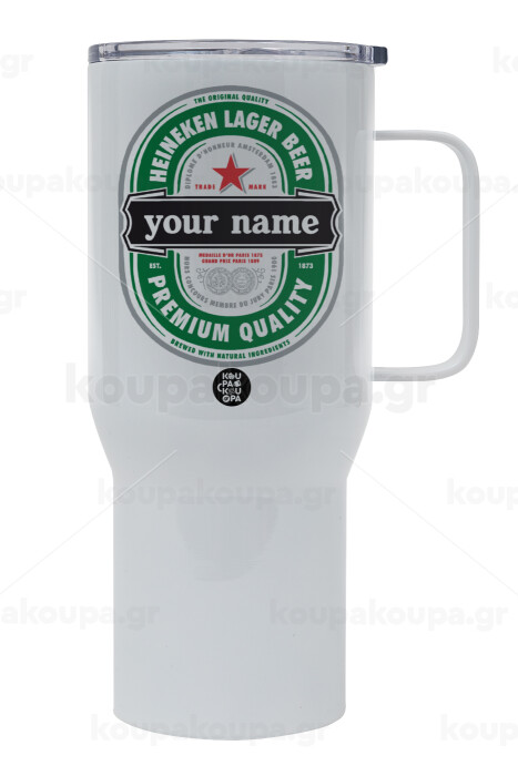 Heineken with name, Mega Stainless steel Tumbler with lid, double wall 750L