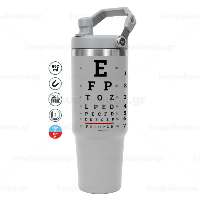 EYE test chart, GREY color, 890ml (30oz) stainless Steel Tumbler with Handle