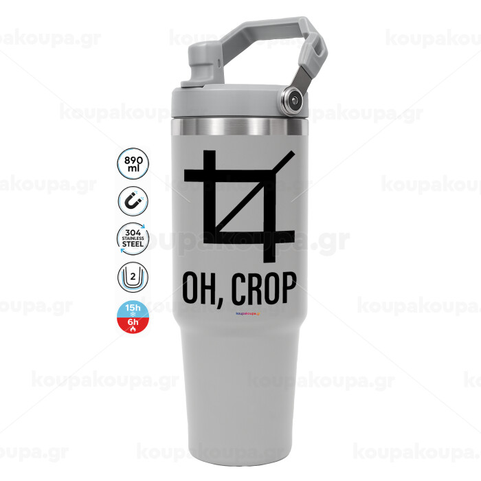 Oh Crop, GREY color, 890ml (30oz) stainless Steel Tumbler with Handle