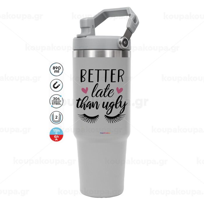 Better Late than ugly hearts, GREY color, 890ml (30oz) stainless Steel Tumbler with Handle