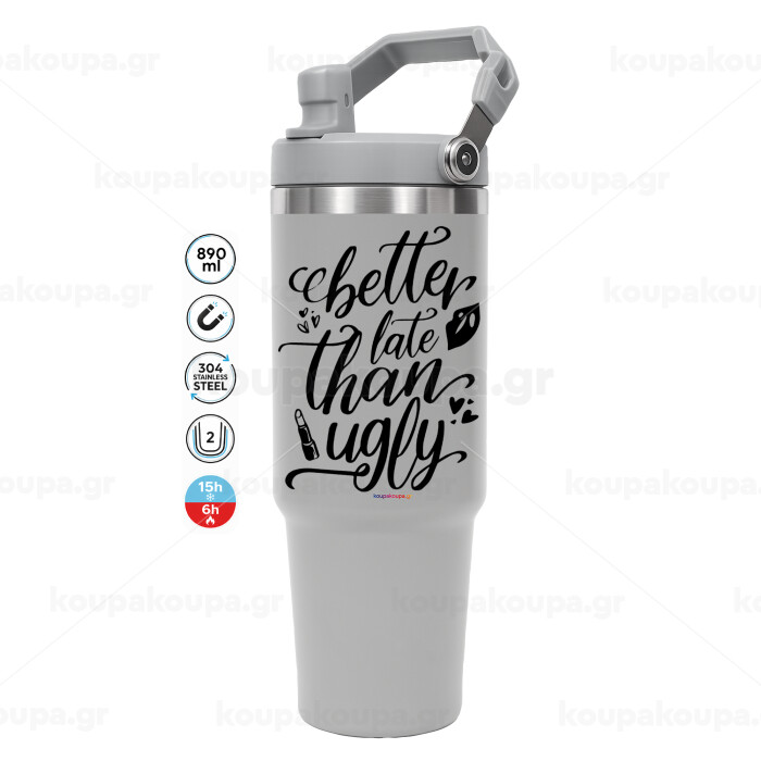 Better late than ugly, GREY color, 890ml (30oz) stainless Steel Tumbler with Handle