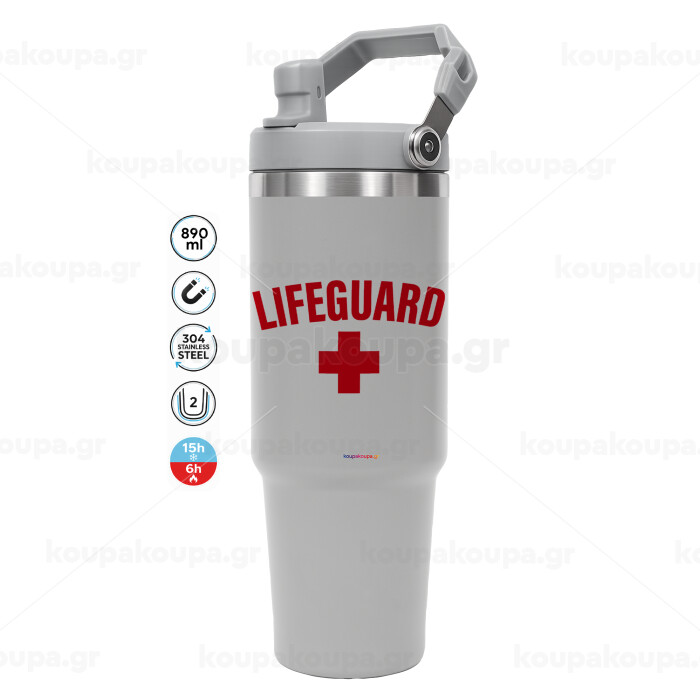 Lifeguard, GREY color, 890ml (30oz) stainless Steel Tumbler with Handle