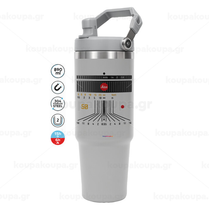 Leica Lens, GREY color, 890ml (30oz) stainless Steel Tumbler with Handle