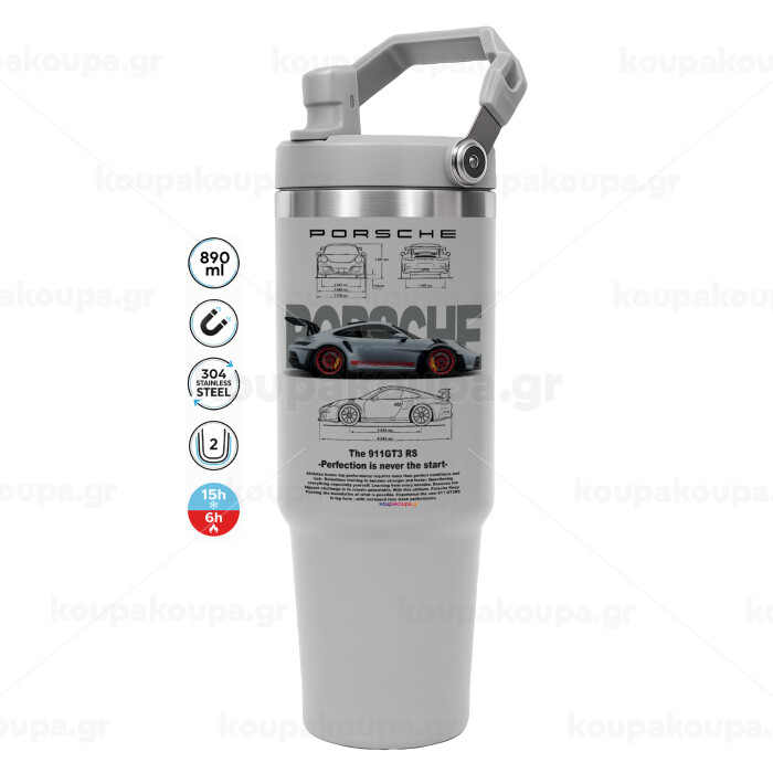 Porsche, GREY color, 890ml (30oz) stainless Steel Tumbler with Handle