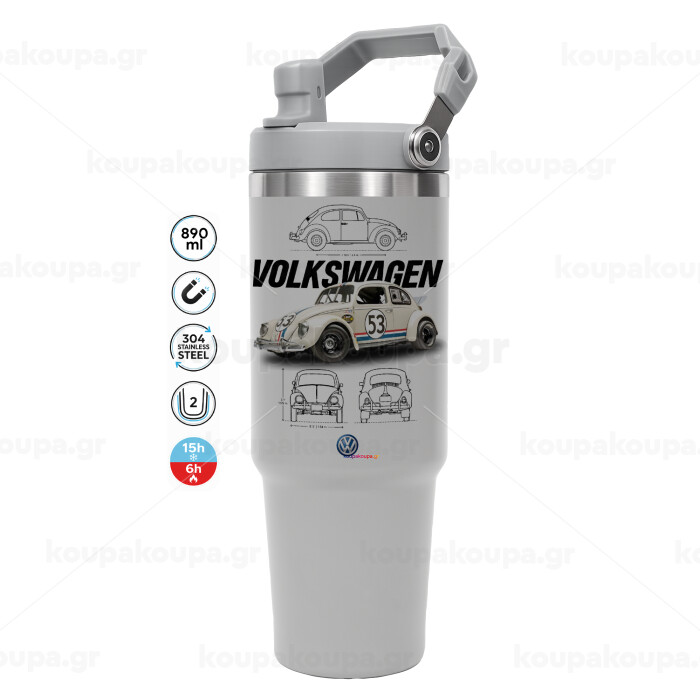 Volkswagen Beetle, GREY color, 890ml (30oz) stainless Steel Tumbler with Handle