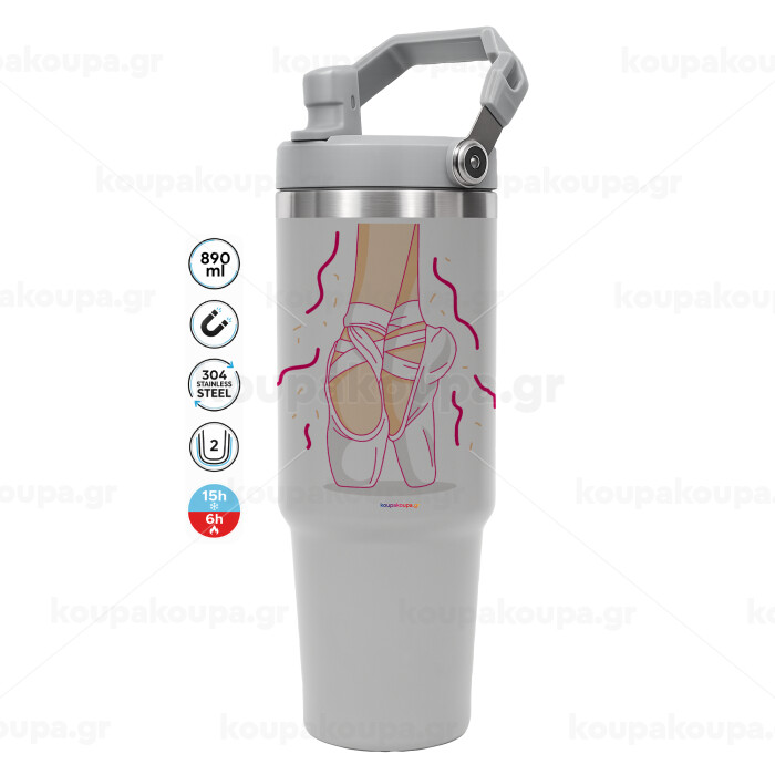 Πουεντ, GREY color, 890ml (30oz) stainless Steel Tumbler with Handle