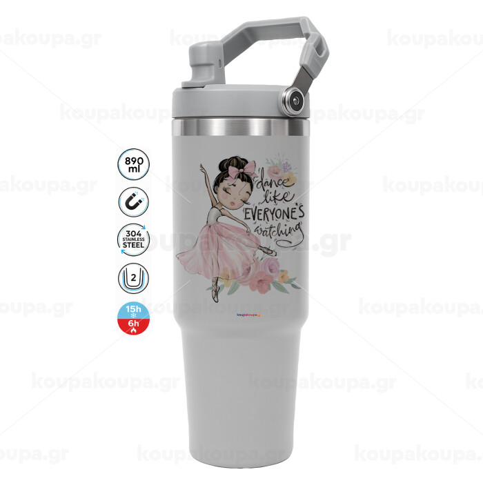 Dance Like everyone's watching, GREY color, 890ml (30oz) stainless Steel Tumbler with Handle