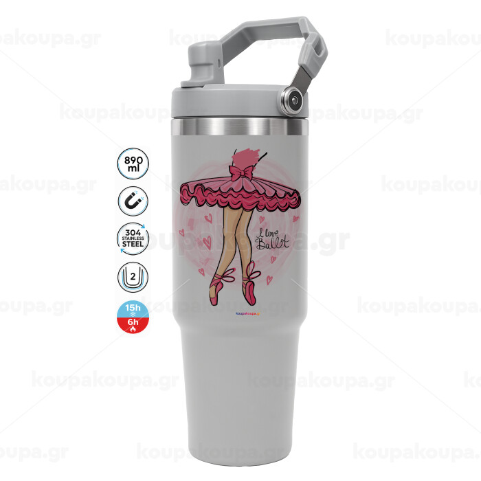 I Love Ballet, GREY color, 890ml (30oz) stainless Steel Tumbler with Handle
