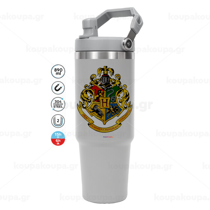 Hogwart's, GREY color, 890ml (30oz) stainless Steel Tumbler with Handle